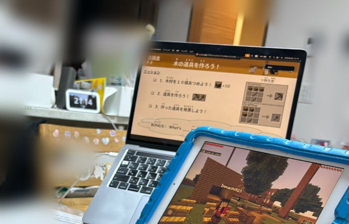我が家はiPadからマインクラフトを、コーチとのZoomにはMacのPCを使用しました。